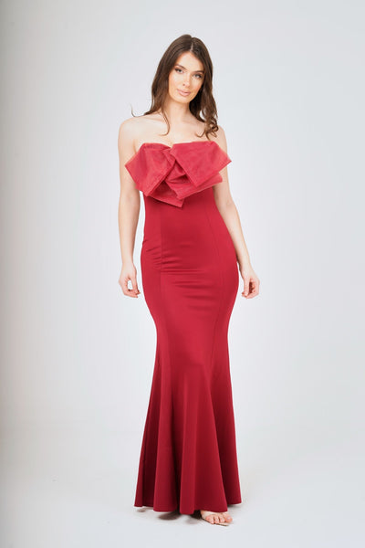 Wine Off- Shoulder Bow-Tie Maxi Dress