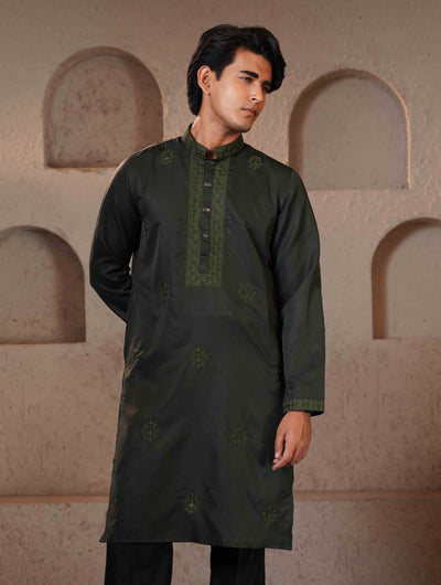 Dark chocolate black collar cuff Embroidery premium Panjabi