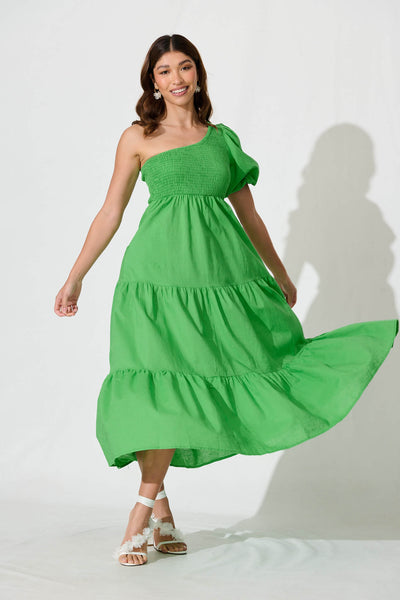 Elyria Maxi Dress In Green Cotton Linen Blend