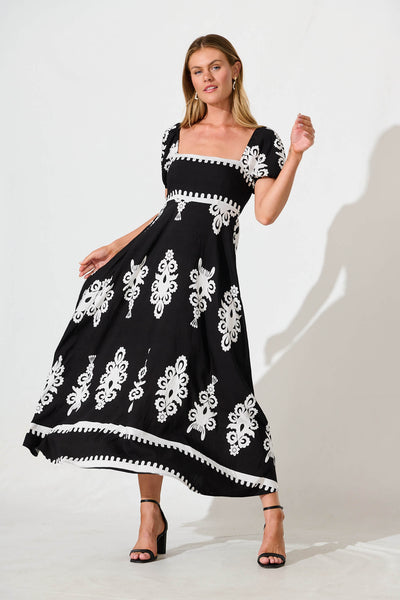 Nashira Maxi Dress in Black and White Embroidered Tulle