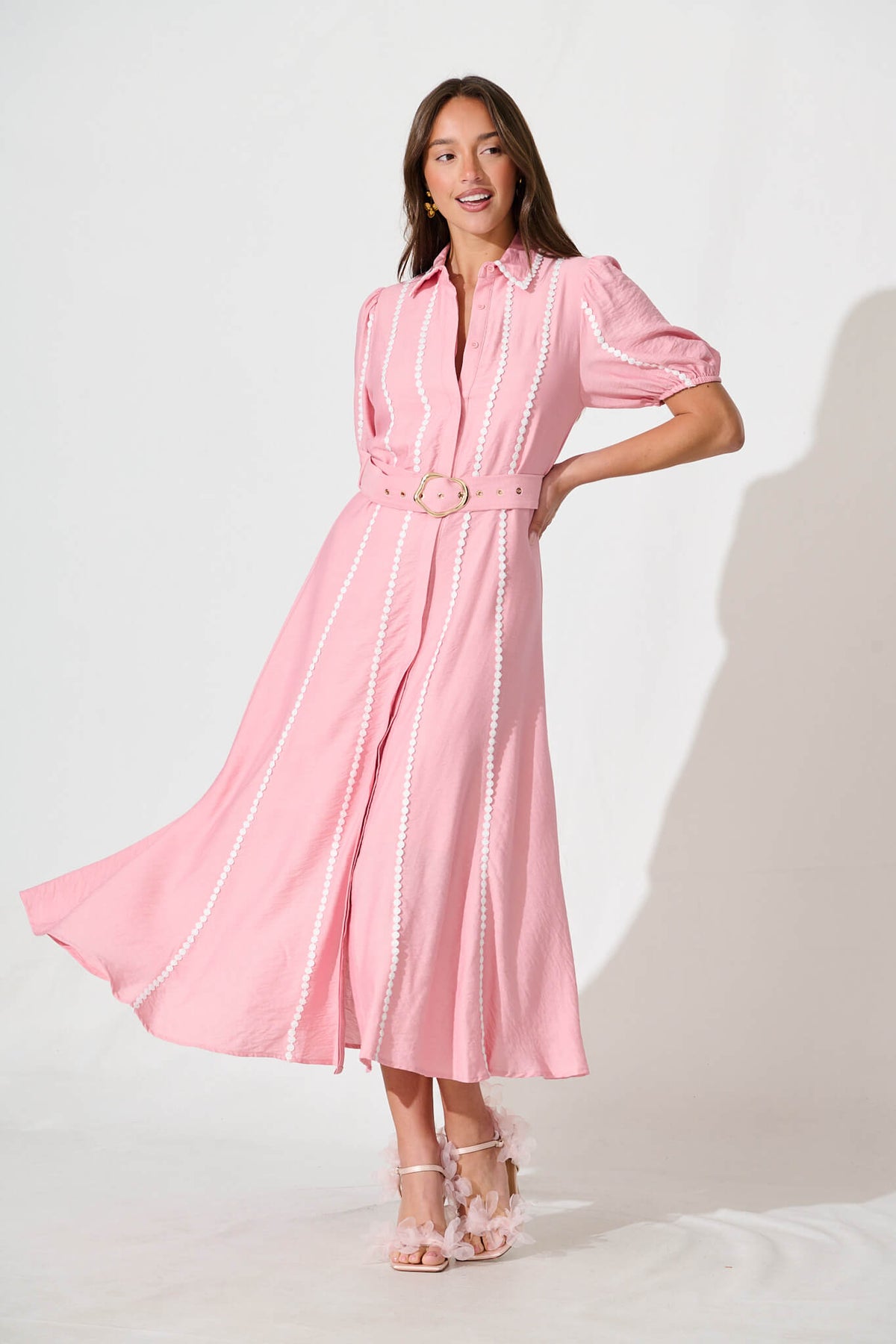 Adore Maxi Shirt Dress In Pink