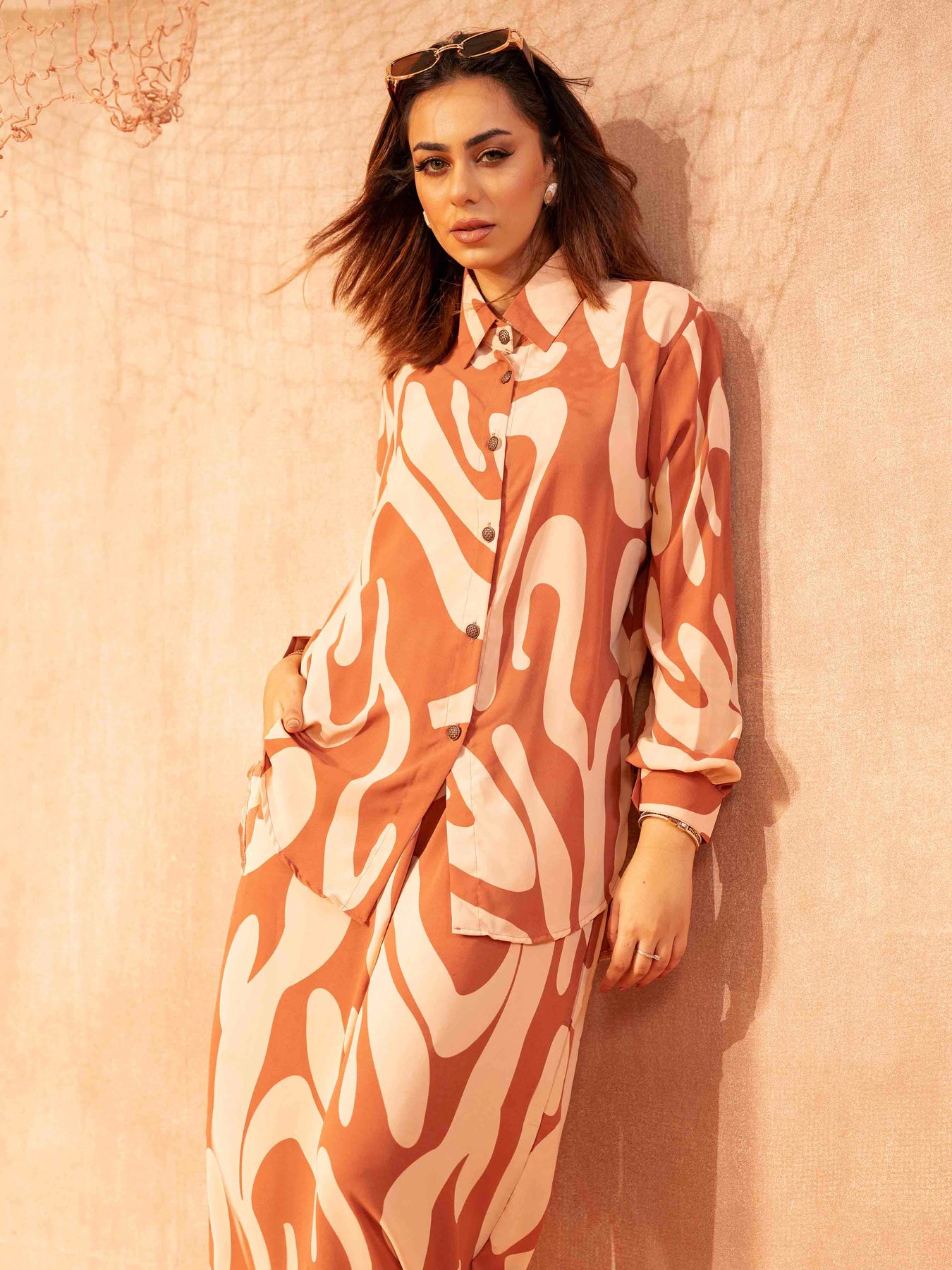 Coral cream nude Blob Printed Female Co-Ord Set