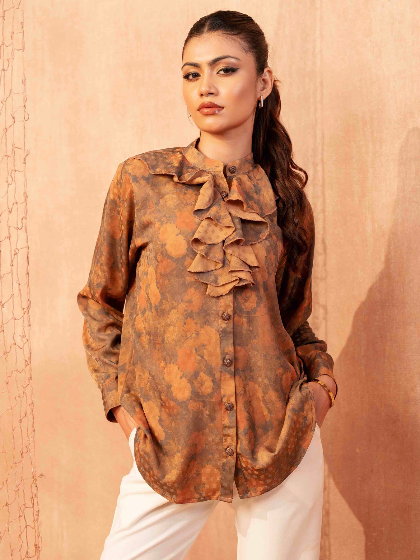 Burnt orange Gray printed Female Exclusive shirt