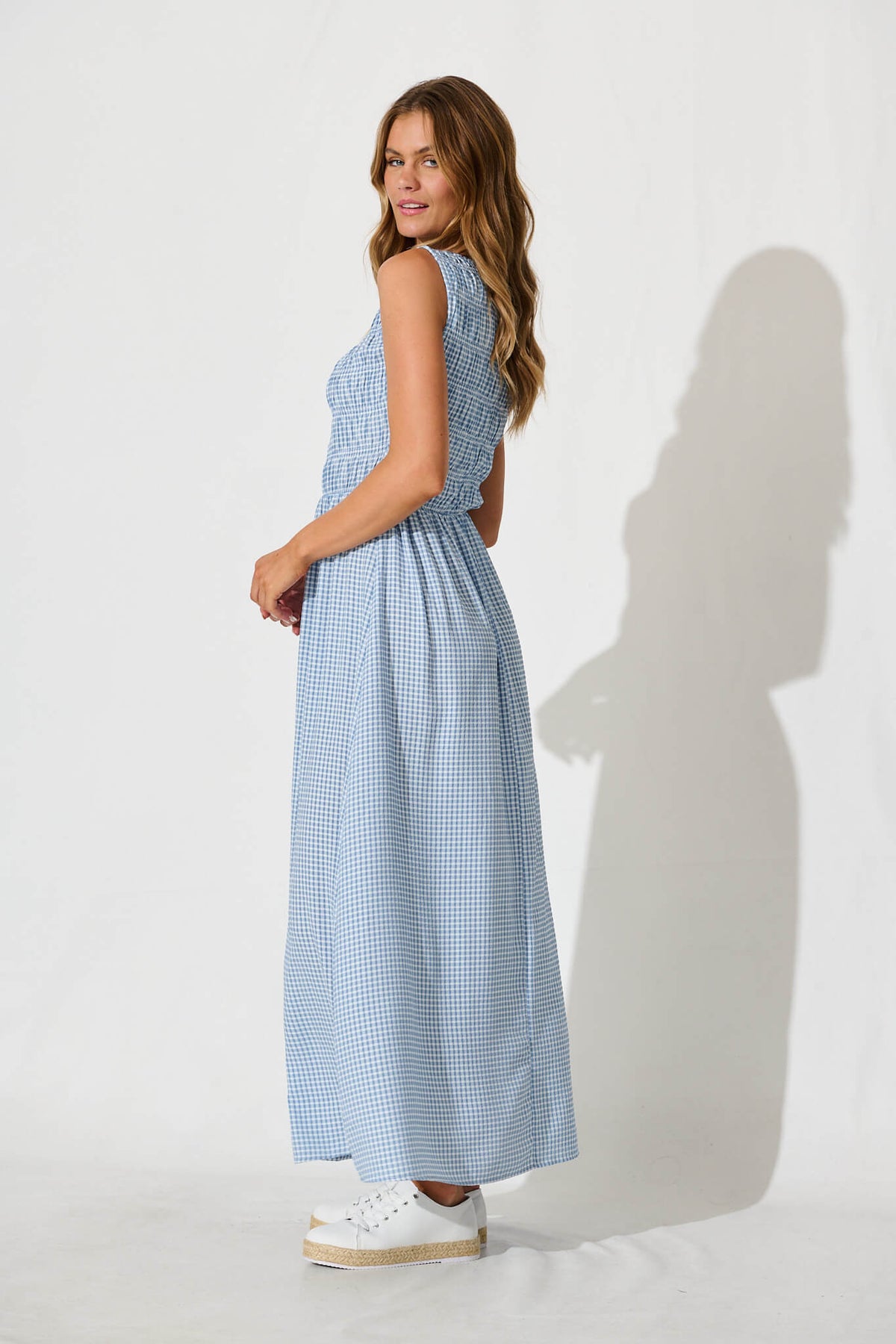 Ionia Maxi Dress in Blue and White Gingham