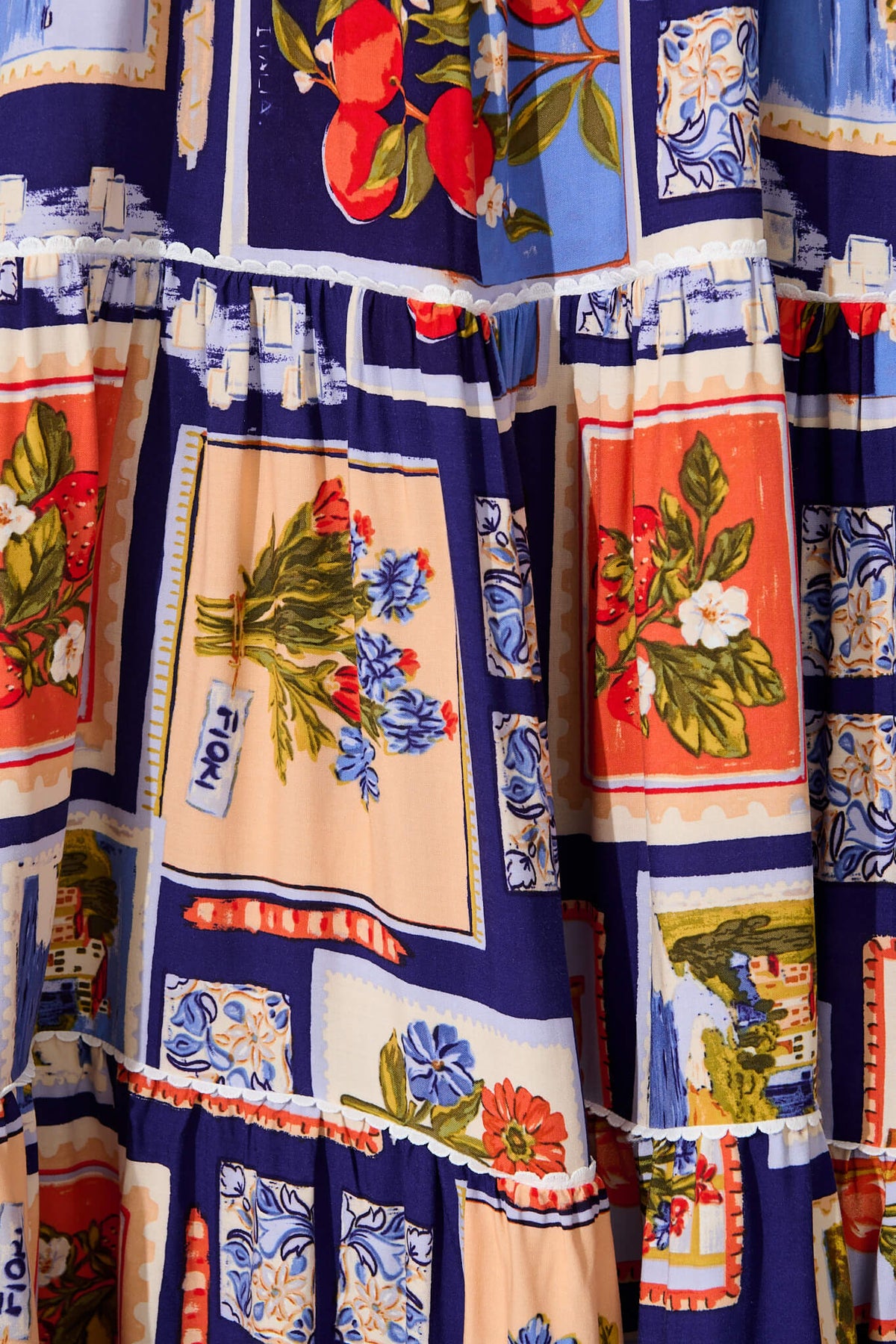 Our Jenelle Maxi Sundress in Blue Multi Postcard Print is the perfect dress for a carefree summer adventure.