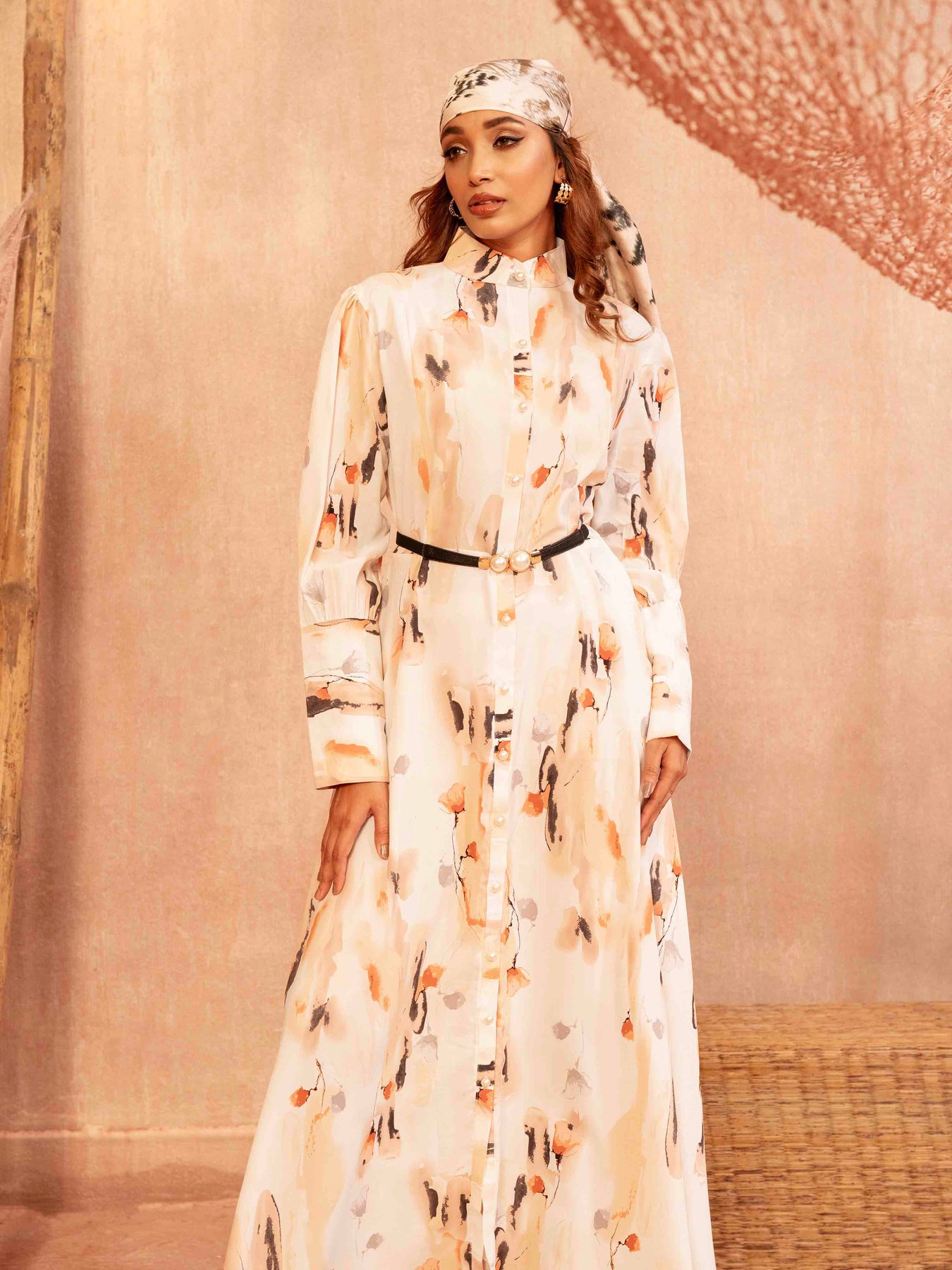 White orange black printed Female Long Gown
