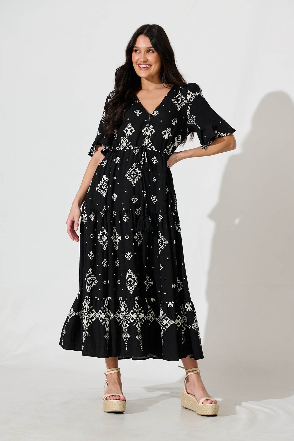 Elevate your style with our Valya Maxi Dress In Linen Blend. This stunning dress features short sleeves and a flattering drawstring waist, you'll look and feel confident in this must-have piece. Perfect for any special occasion or a night out.