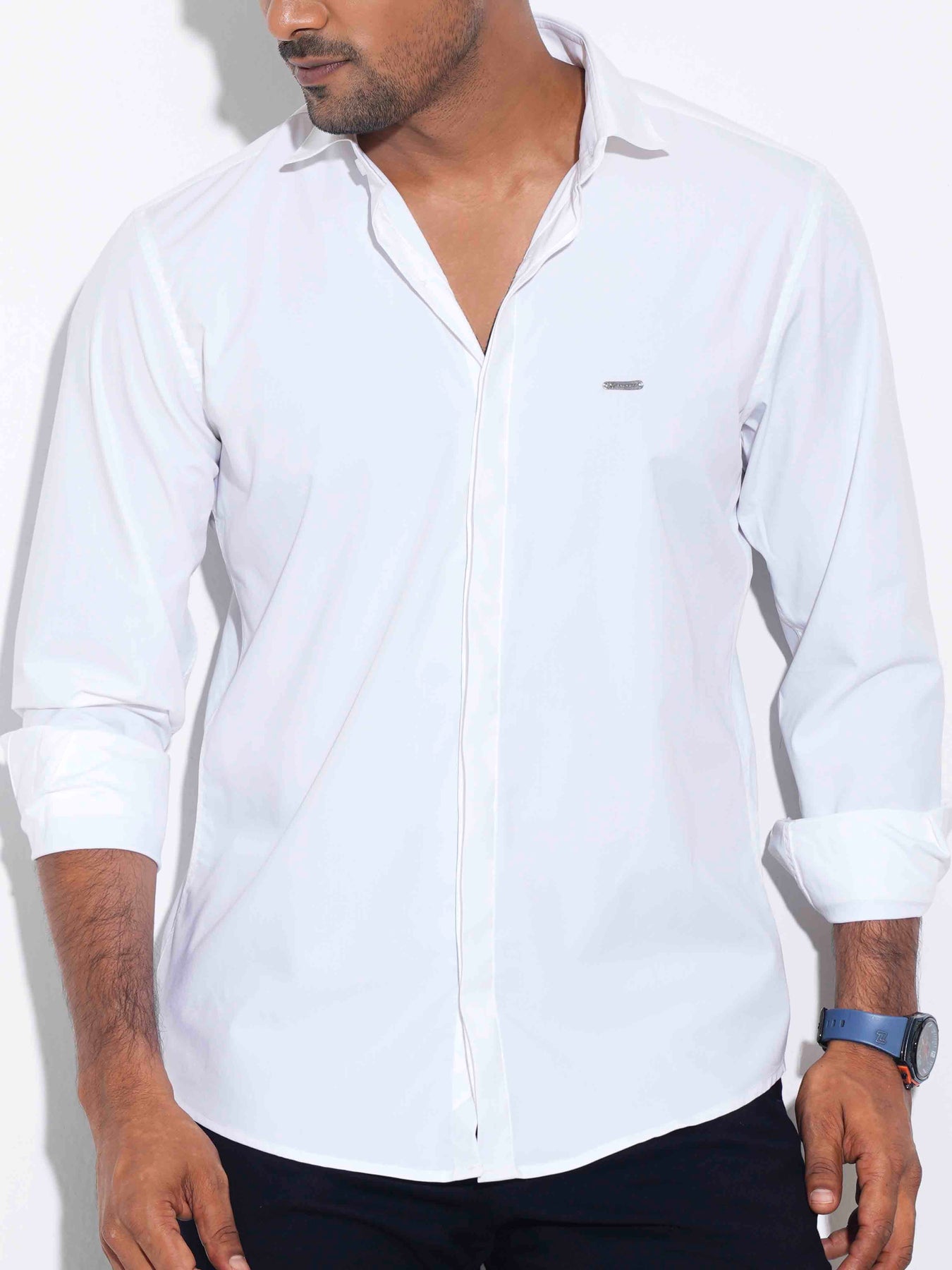 White color plated solid full sleeve shirt